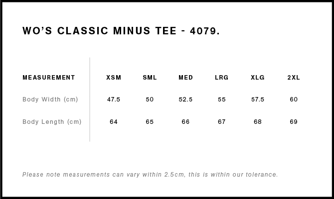 • Shorter body roughly 5cm shorter than our standard Classic Tee